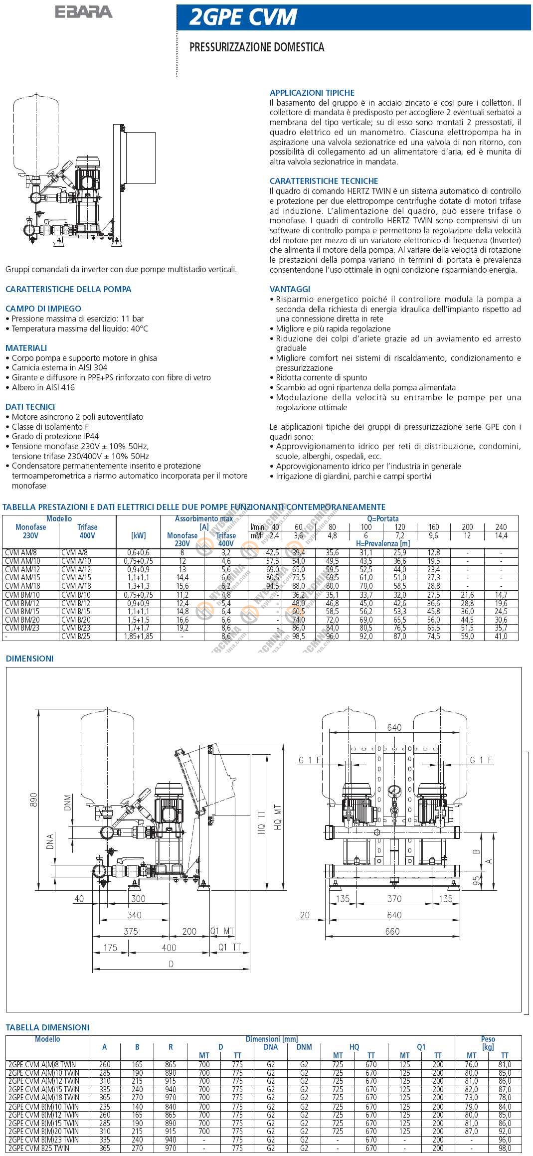 POMPE VERTICALI 2x CVMB/15 - 1.1kW 220V -