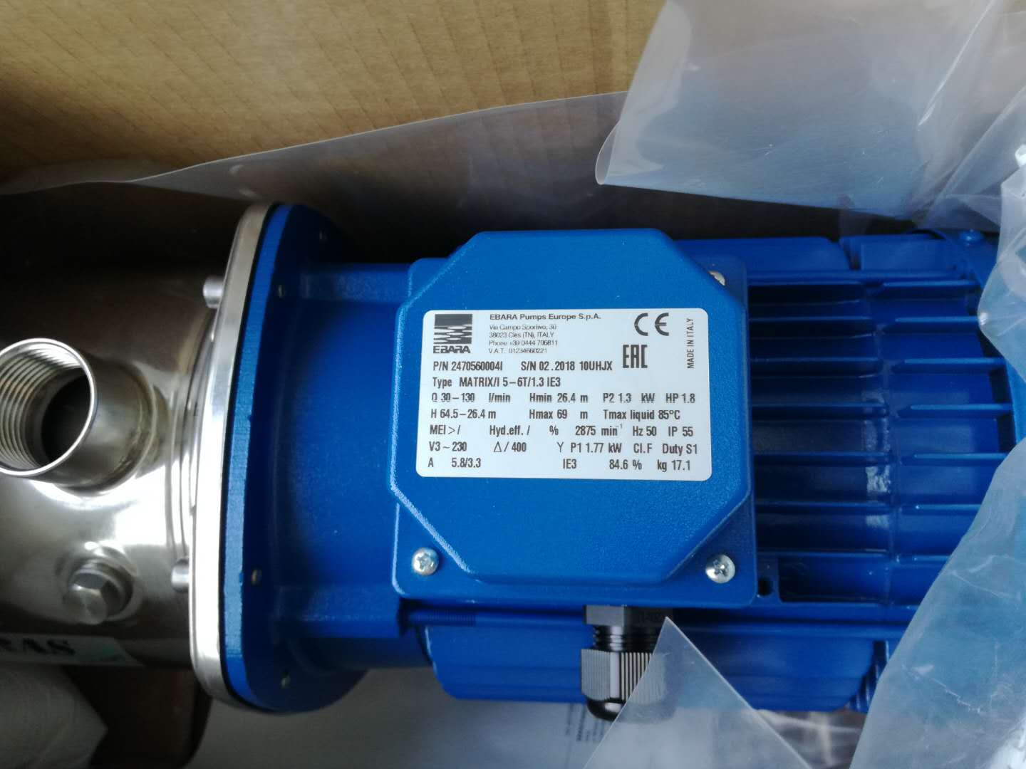 型号 EBARA MATRIX/15-6T/1.3 IE3
