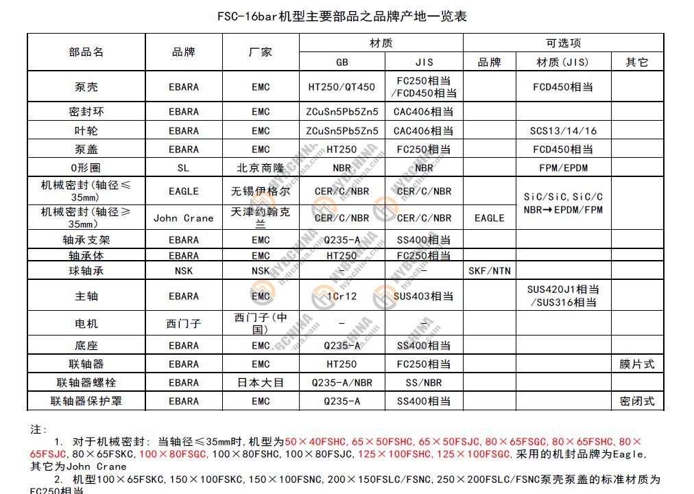 EBARA FSC和FSSC卧式端吸泵技术文件