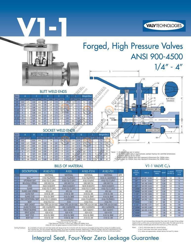 ValvTechnologies V1-1 Valve Technologies高压球阀 压力到4588PSI