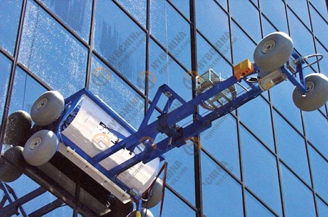机器自带擦拭抹布与楼外表的玻璃面或其它材质的墙面接触,在机器喷射出的高压水泡沫方式,将墙体、玻璃表面清洗干净。但是,注:此清洁机器人不适用于建筑凹槽超出15cm以上的墙体;15cm以上的请选择我们的小型清洗机器人。