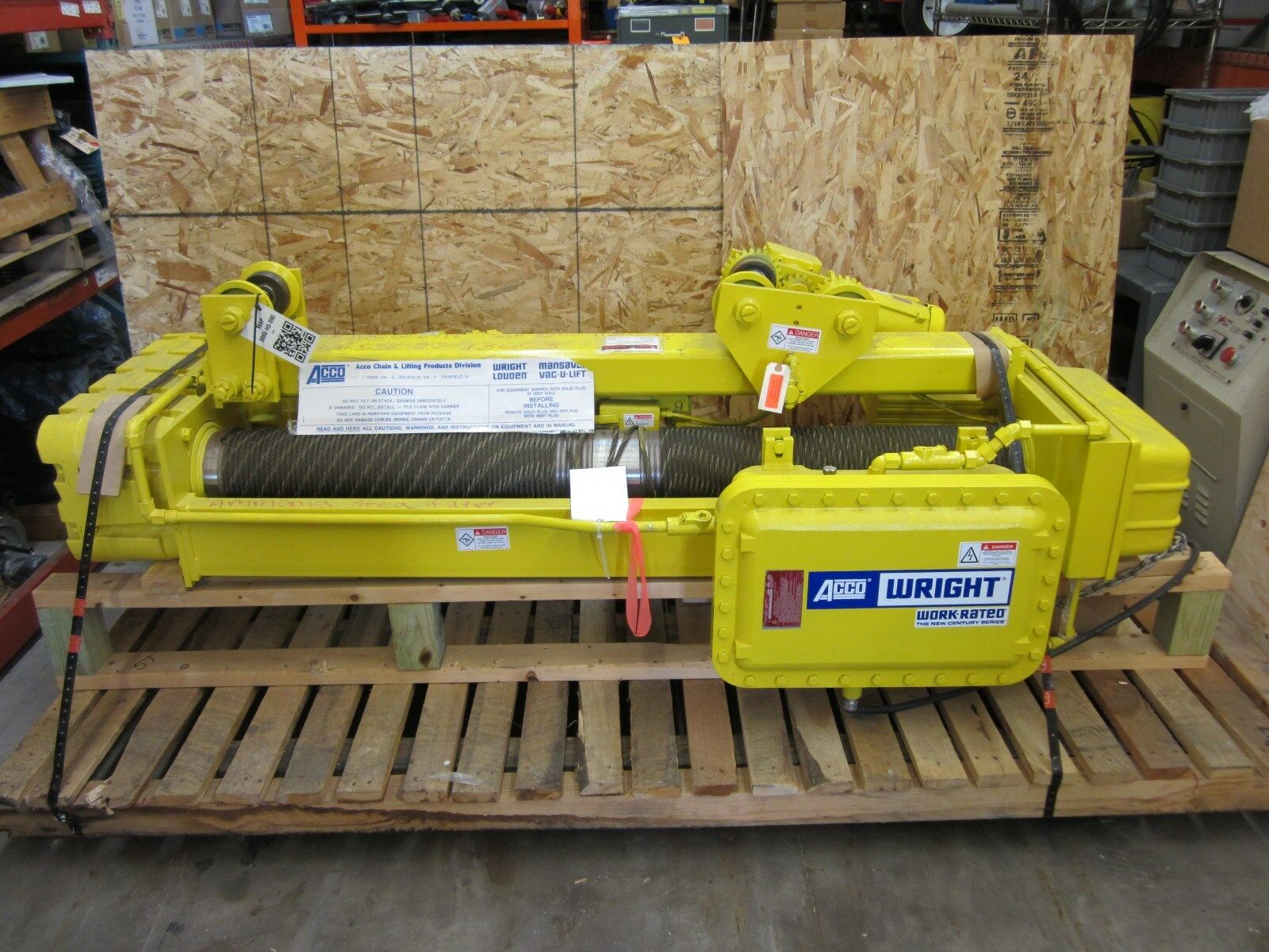 ACCO WRIGHT WORK RATED 2 TON WIRE ROPE HOIST MOTORIZED TROLLEY 86 FOOT LIFT卷扬机构