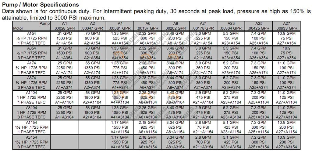 As shown below, a variety of performance characteristics are available through the combination of several pump configurations with single and/or three phase